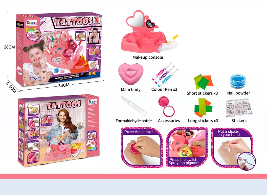 طقم وشم وتاتو مؤقت للأطفال مع طاولة مكياج – Tattoo & Makeup Set